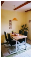 Der Essplatz, mit einem grossen Tisch, bietet Platz für bis zu 6 Personen.